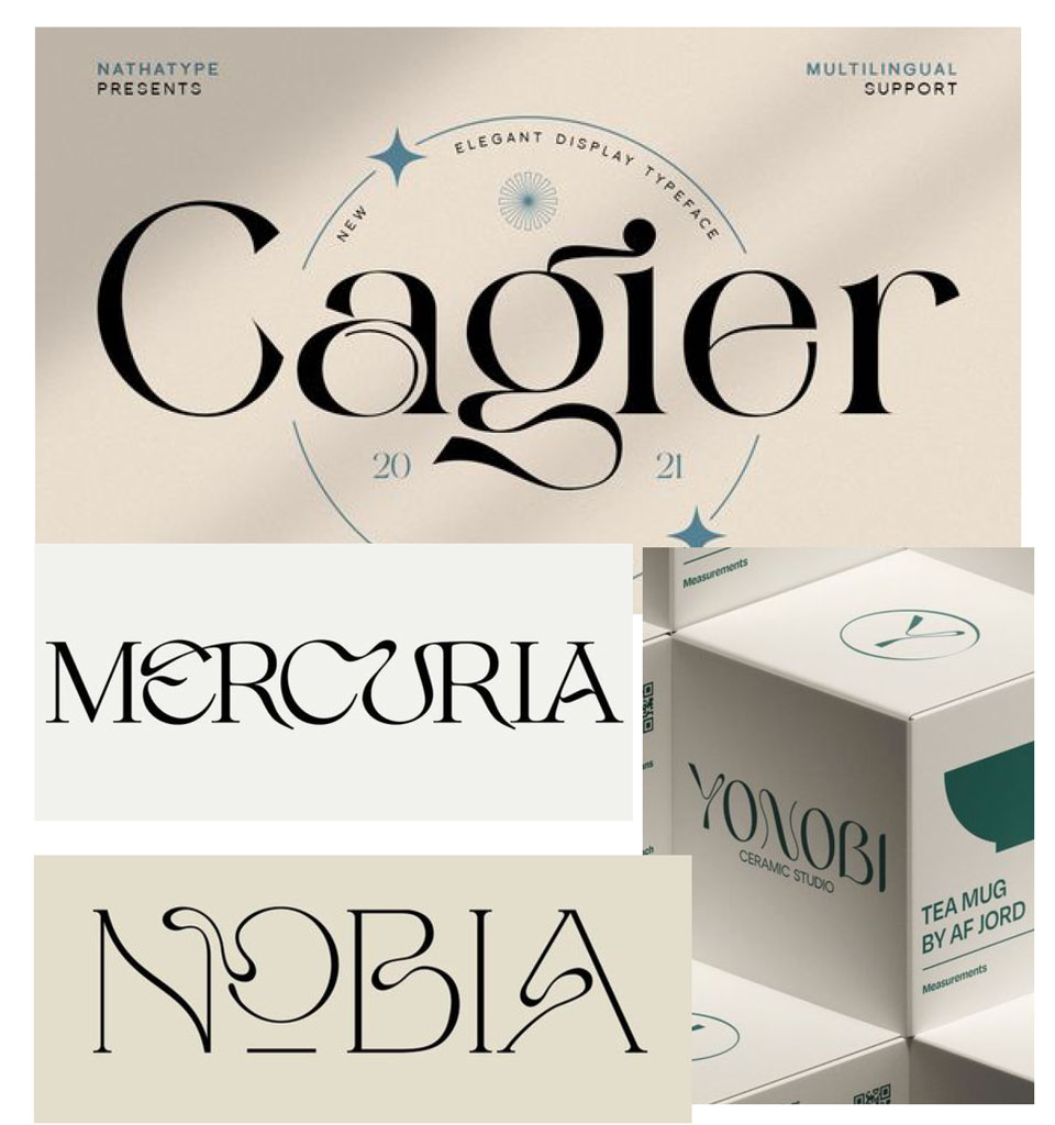 In the premium and uppermainstream categories, serif fonts with sophisticated, complex form reign supreme. Created almost as if after absinthe 😉