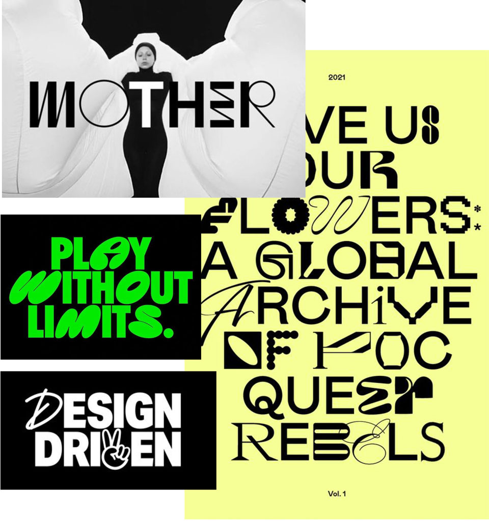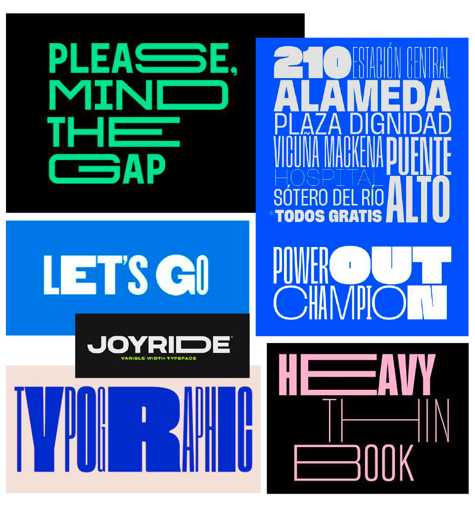 Another way to have fun with simple, sans-serif typography is to play with different letter widths. Recently, a lot of such ready-made fonts have been created.
