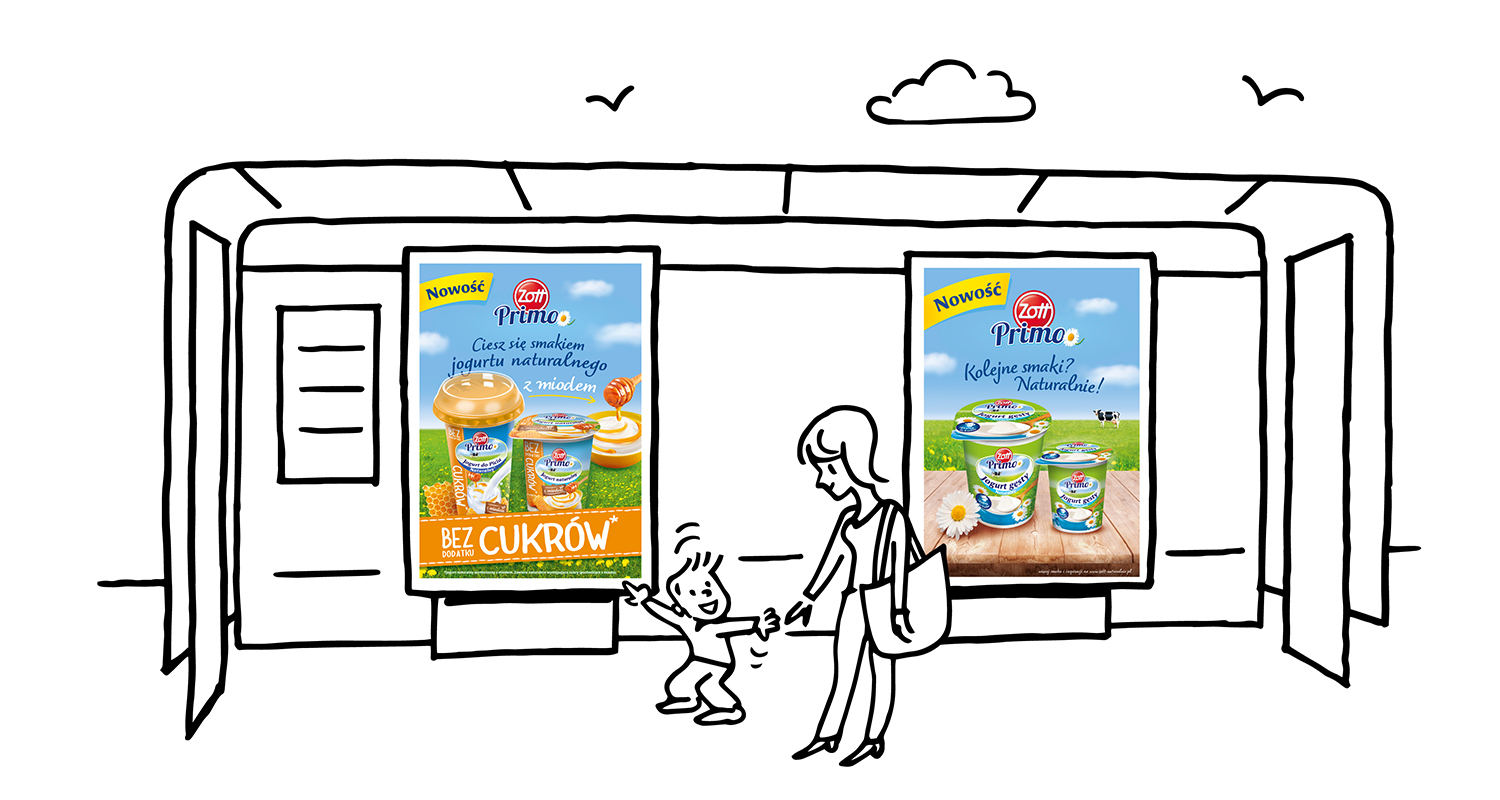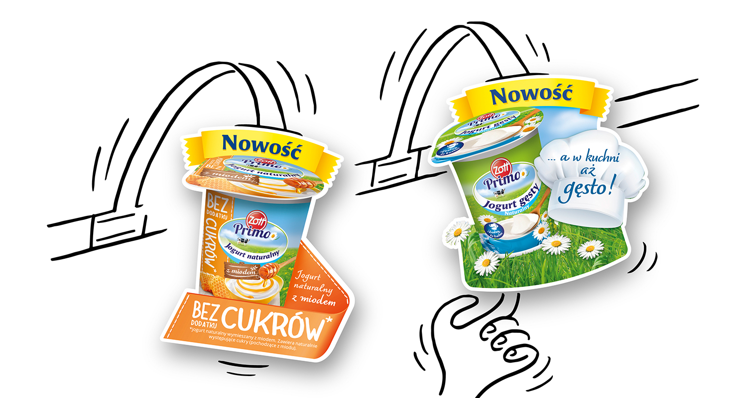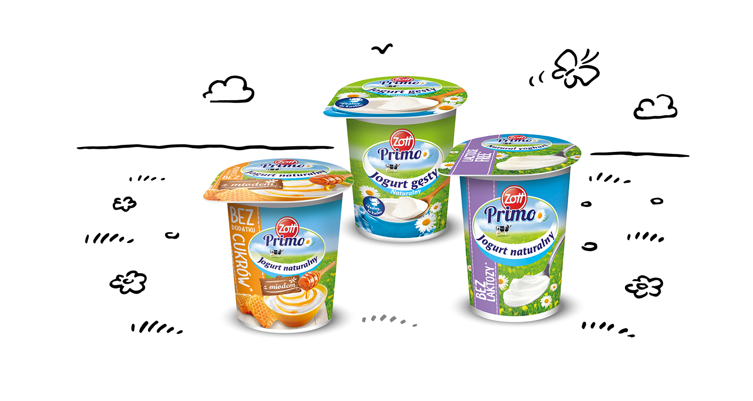 Although Zott has many well-known brands, we had the opportunity to work on the biggest of them – Primo and Belriso. Zott Primo is a line of traditional dairy products using natural ingredients. We have refreshed the subbrand and developed packaging design for its new products: natural yogurt with honey, natural drinking yogurts, lactose-free yogurt, and creamy yogurt.