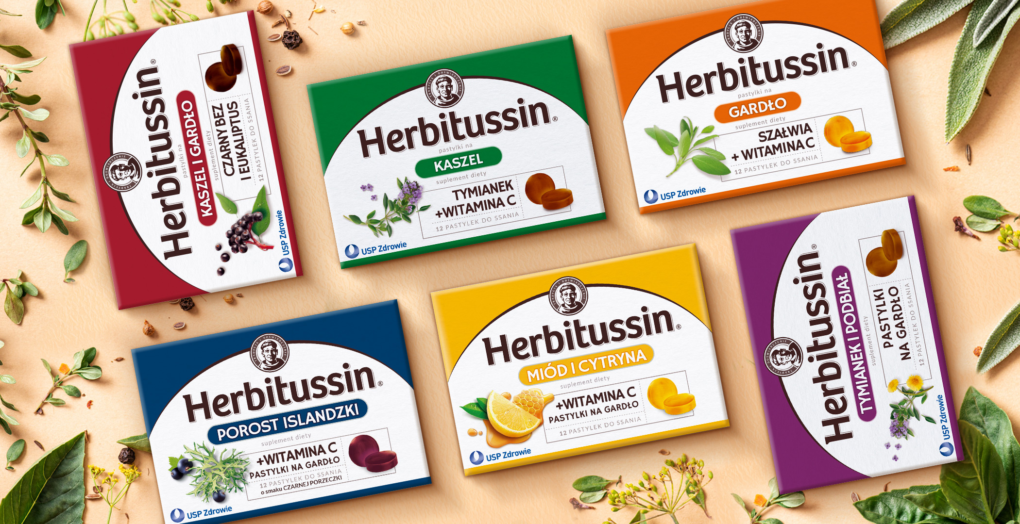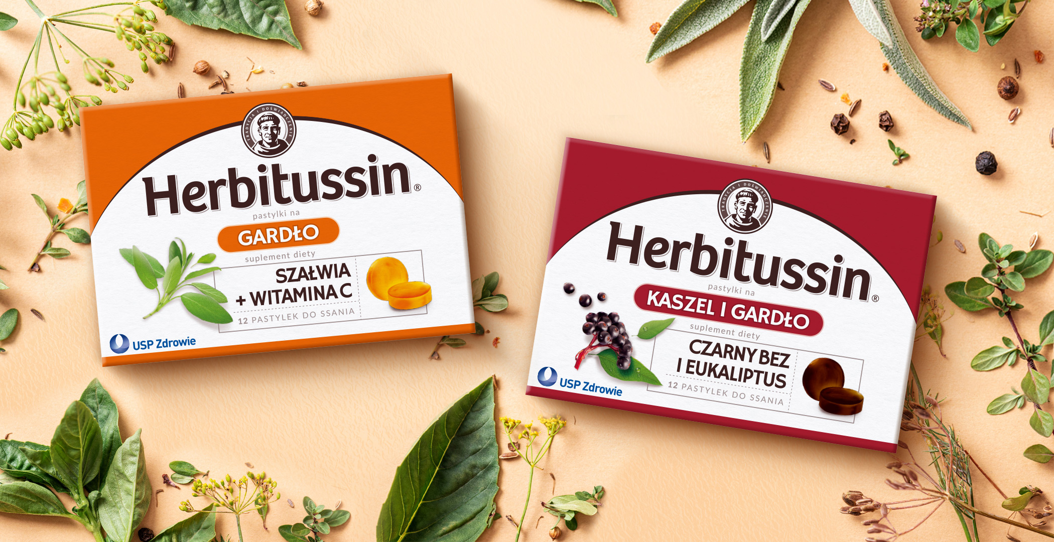 Herbitussin to marka USP Zdrowie poruszająca się w kategorii naturalnych preparatów na gardło. Ma formę pastylek do ssania, a jej komunikacja oparta jest na tradycyjnej wiedzy i doświadczeniu mnichów. Odpowiadając na wyzwania i oczekiwania współczesnego rynku, nasz klient postanowił przeprowadzić redesign opakowań. Zostaliśmy poproszeni o stworzenie layoutu, który będzie połączeniem tradycji (czyli korzeni marki) i nowoczesności (współczesna marka naturalnej medycyny).