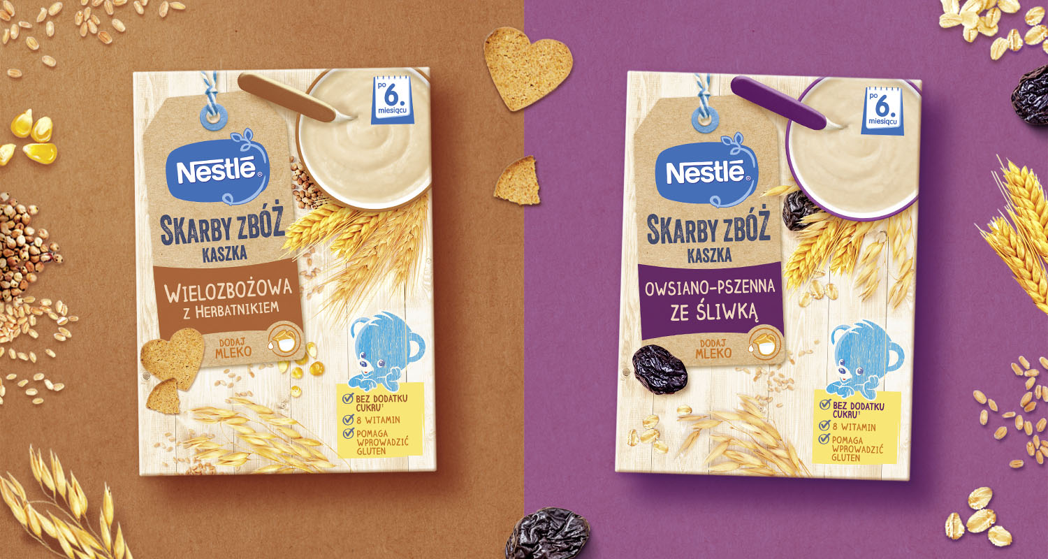 Nestlé jest jednym z głównych producentów kaszek dla niemowląt i dzieci na polskim rynku. Naszym zadaniem w przypadku tego relaunchu było ujednolicenie designu oraz brandingu całego portfolio Nestlé w tym segmencie (ok. 20 produktów), z jednoczesnym uwypukleniem różnic, pomiędzy „standardowymi“ kaszkami w pouch’ach oraz kaszkami kategorii premium sprzedawanymi w kartonikach. Jednocześnie stworzyliśmy nowy wariant kaszek jogurtowych, dla dzieci od 1 roku życia oraz kleików i kaszek do picia.