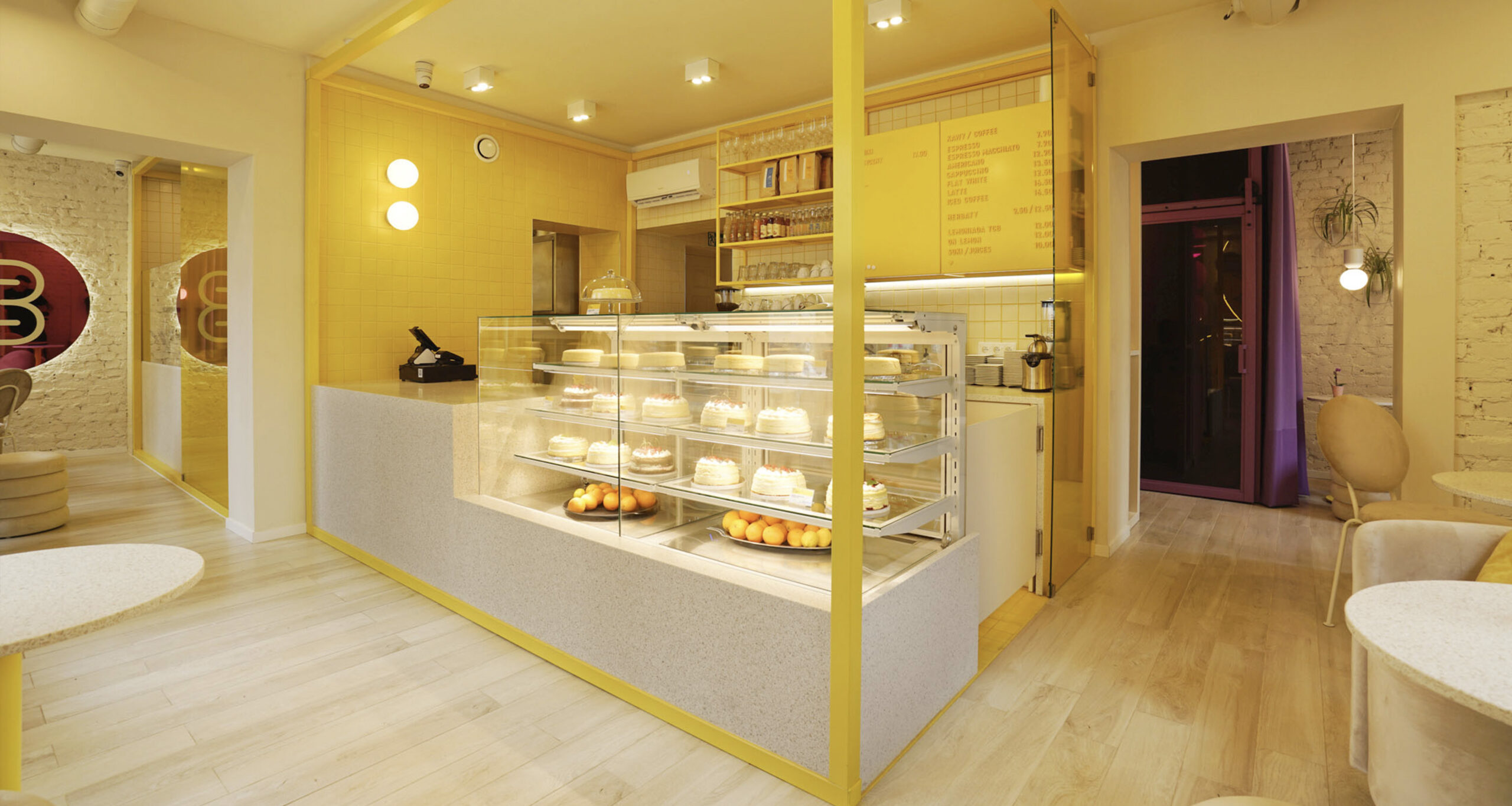 Bardzo ważne było dla nas stworzenie wnętrza, które w umiejętny sposób połączyłoby japoński minimalizm z przytulnością lokalnej kawiarni. Ponieważ oferujemy wyłącznie produkty, które są wypiekane na miejscu, zależało nam na pełnej integracji strefy wypieku z pozostałą częścią lokalu. Cały koncept został rozwiązany przy użyciu wyłącznie trzech kolorów. Odcienie żółci i beżu symbolizujące sernik zestawiliśmy z intensywnym fioletem, który symbolizuje japoński kwiat wiśni. Przy całej koncentracji na japońskiej estetyce, naszym celem było stworzenie przekazu wizualnego, który odróżniałby się od utartych ścieżek wykorzystywanych przez klasyczne lokale oferująca sushi.