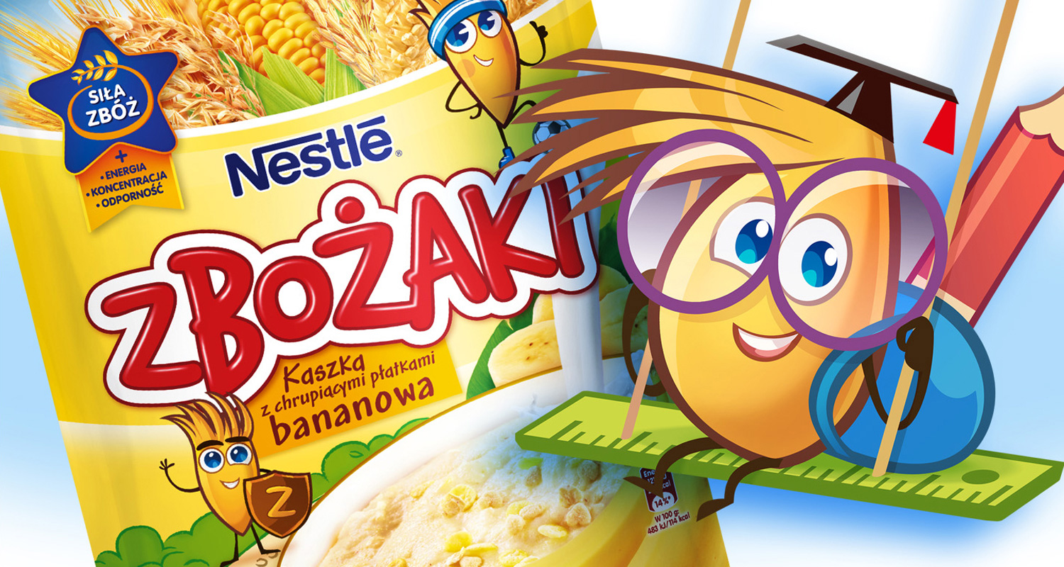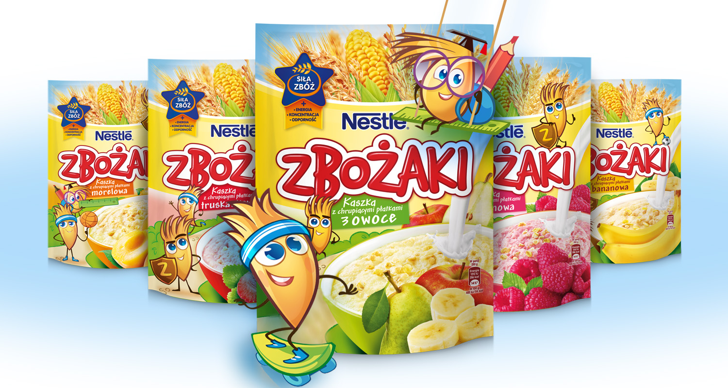 Nasze zadanie polegało na zbudowaniu pomostu w kaszkach między niemowlakami a rosnącymi użytkownikami – przedszkolakami i dziećmi w wieku szkolnym. Nowa marka oraz design opakowań przemawia do matek, która chcą karmić dziecko zdrowym produktem, ale też do 3-8 latków, którzy czują się z tym opakowaniem dobrze i rozumieją, że ten produkt adresowany jest właśnie do nich. Nazwa, design oraz 3 małe postacie Zbożaków (energia, odporność i koncentracja) nadają marce sympatyczny wygląd.